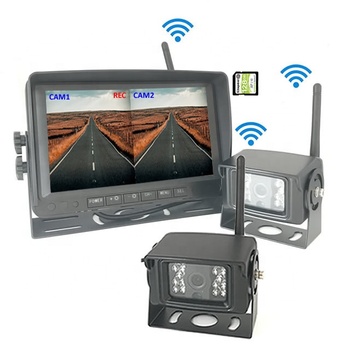 AHD 720P מלגזה אלחוטי מצלמה קדמי מערכת 2pcs עמיד למים מצלמות ערכת עם 7 אינץ 2CH נרשם צג עבור אוטובוס משאית כבד